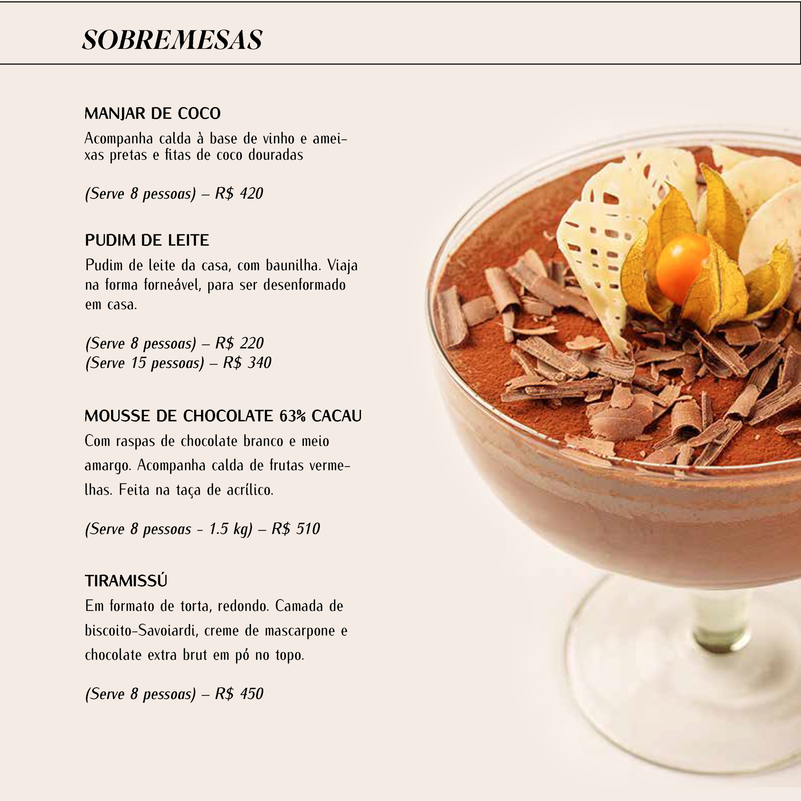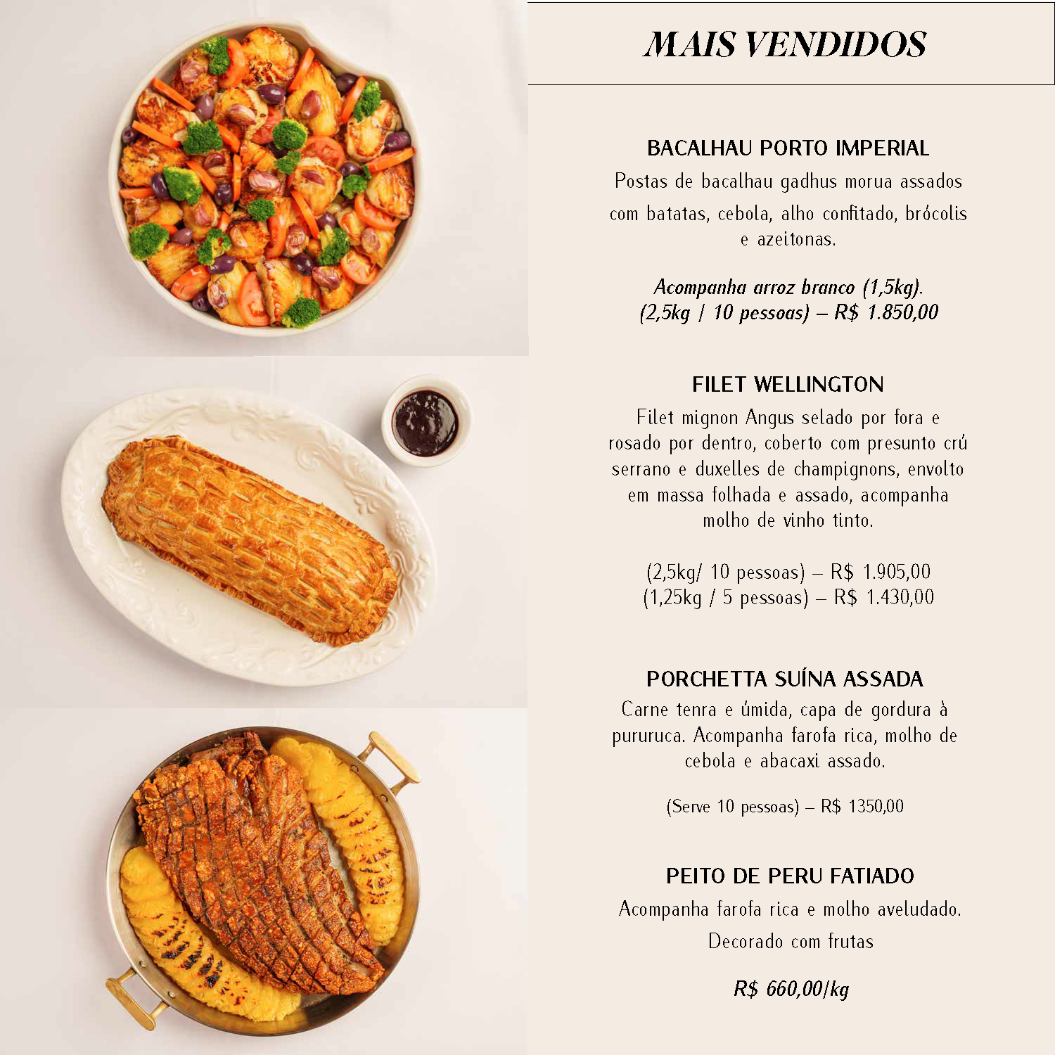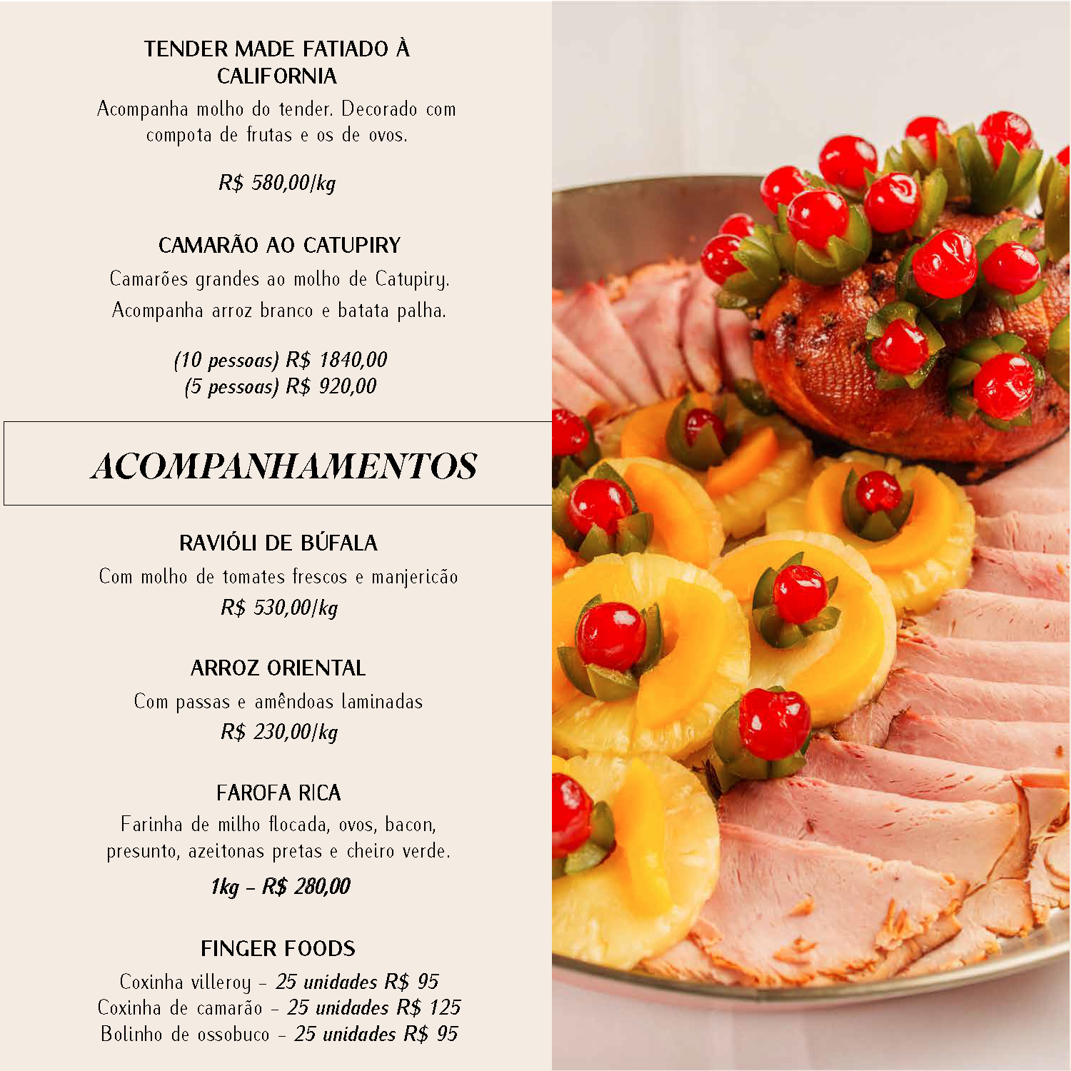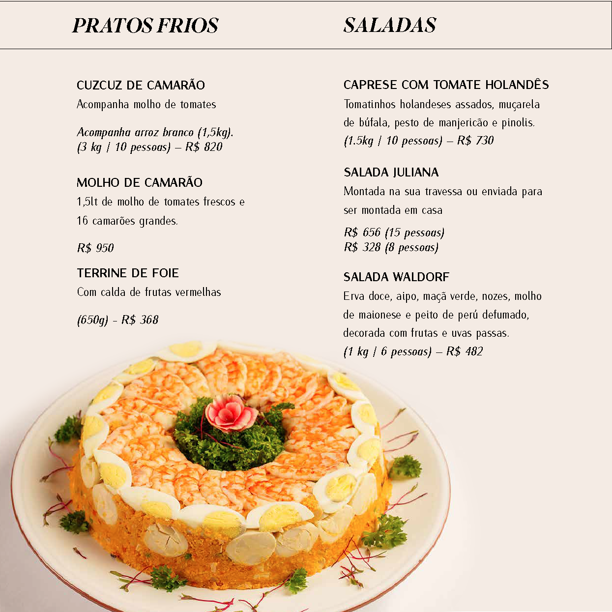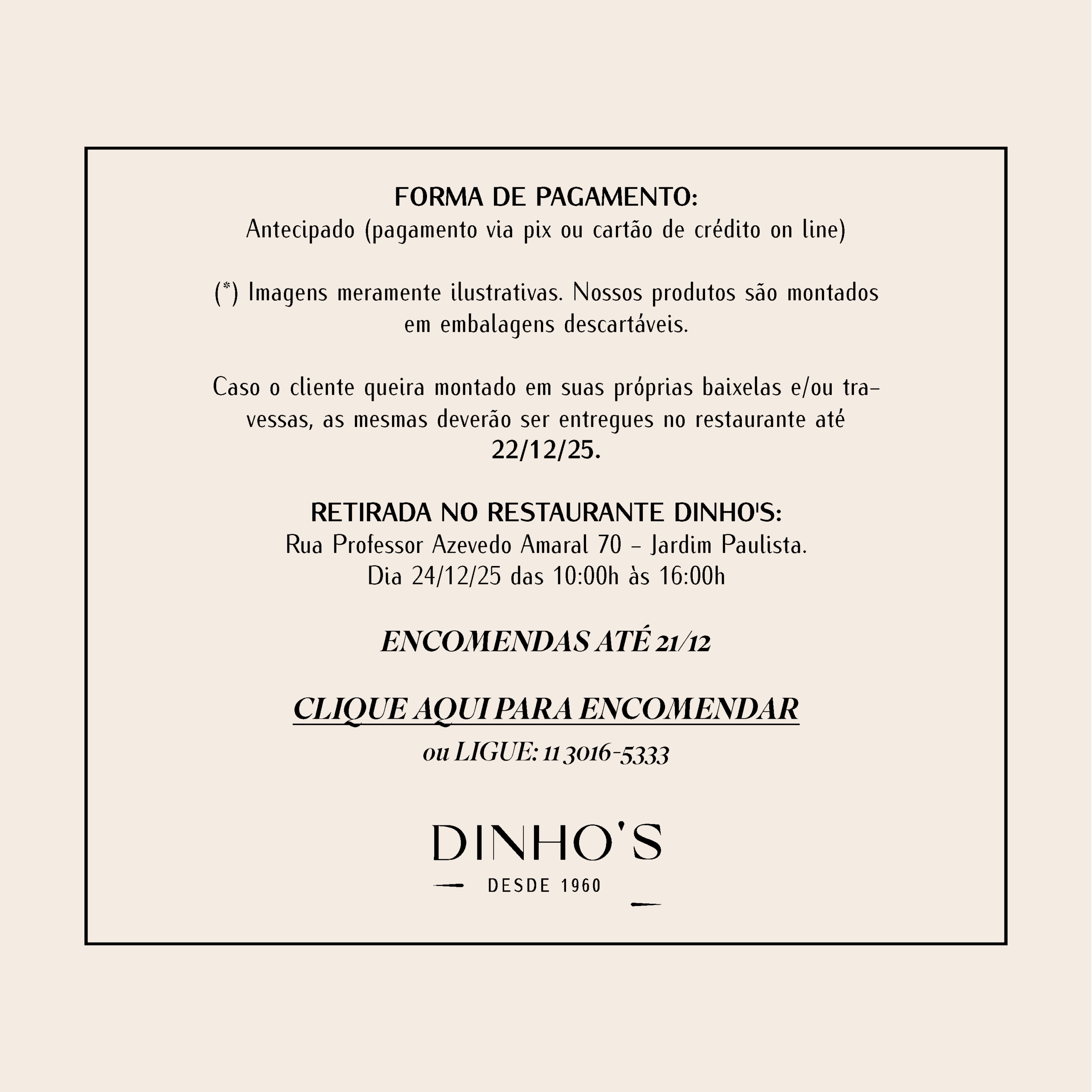 Caso o cliente queira montado em suas próprias baixelas e/ou travessas, as mesmas deverão ser entregues no restaurante até 22/12/25.